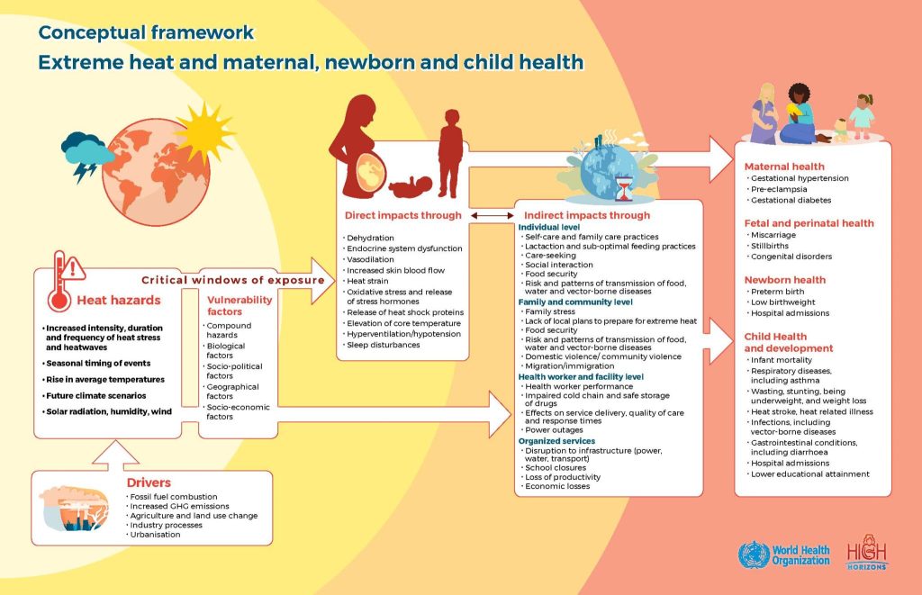 Our conceptual framework on heat-health impacts of heat on pregnant women and children